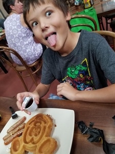 Our day begins at breakfast as many great days do. We decided to go to Port Orleans French Quarter, which is a short walk along the Sassagoula River to the Sassagoula Floatworks and Food Factory. Now I have to admit breakfast here was not as top-notch as the last visit but the Mickey Beignets are always a must. There was not a lack of Mickey waffle at our table, definitely a Disney World staple.